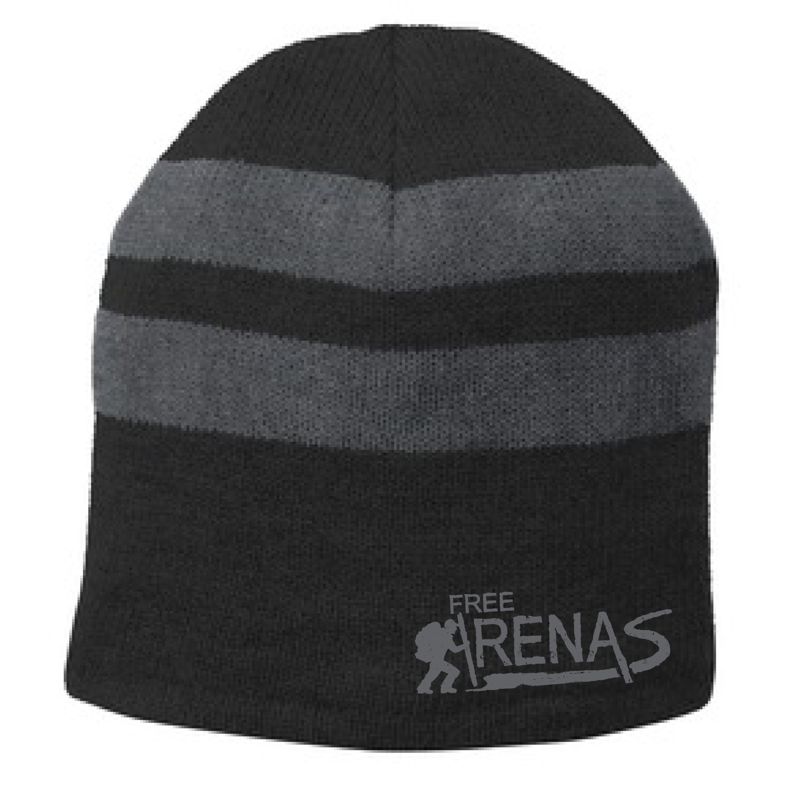 Classic stripes and warm fleece lining make this beanie a stylish cold-weather must-have.