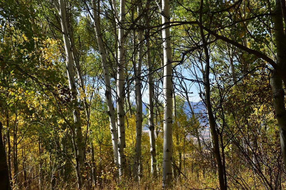 Aspen Trail (tr 034) is single track trail for 4.35 miles along 6,800 ft contour to Darby Canyon (tr 012). Spring Creek Trail (tr 032) is double track trail for 3.68 miles to end.