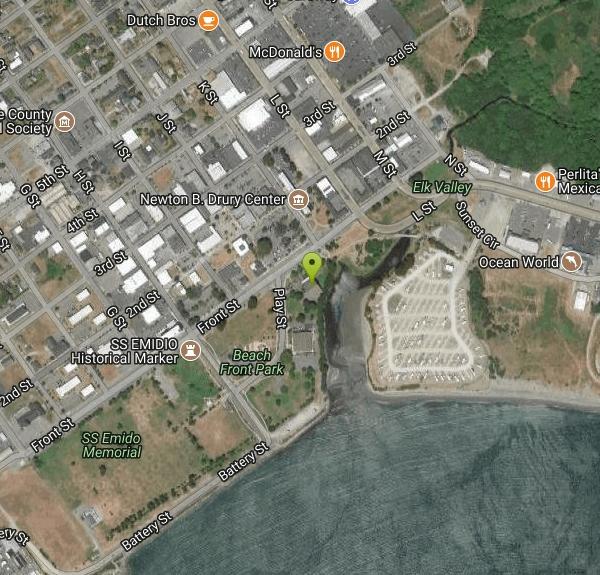Hwy 101 to Front St. Go west (south end of town at S-curve). Left at Bill Stamps Way. Right at harbor/Howe Dr. Go 500' and park across from baseball backstop.Courtesy of DiscGolfUnited.com