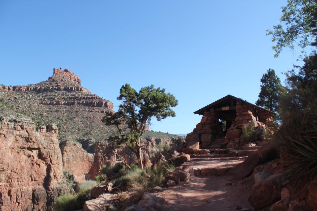 The popular out-and-back Bright Angel Trail to Three-Mile Resthouse is 5.4 miles out in distance. The trail includes many steep switchbacks and 360 degrees of absolutely stunning views of the inside of the canyon. The Bright Angel trail will take you from Grand Canyon village down to the Three-Mile Resthouse. The challenging up-hill return will likely take you twice as long as the steep descent. The narrow trail takes you right down the canyon with sheer cliffs up above you. Be sure to pace yourself as the elevation changes are abrupt in this Grand Canyon terrain. The trail condition varies depending on the time of year, therefore, it is important to prepare for shadeless extreme heat in the summer and icy patches in winter months. There is water available on the trail so be sure to bring bottles to fill up. Pit toilets, covered shelter, and drinking water are all available at the Resthouse.
