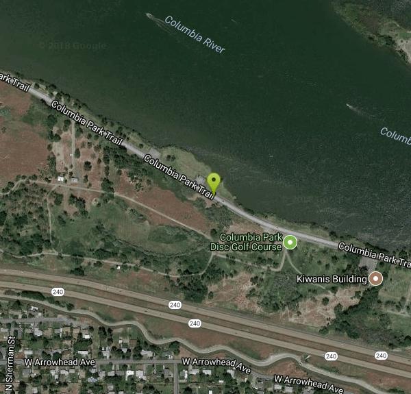 From Hwy 240, between Edison & Columbia Center Blvd., take either exit towards river onto Columbia Dr. in Columbia Park. Course between Kiwanis bldg. and campground.Courtesy of DiscGolfUnited.com