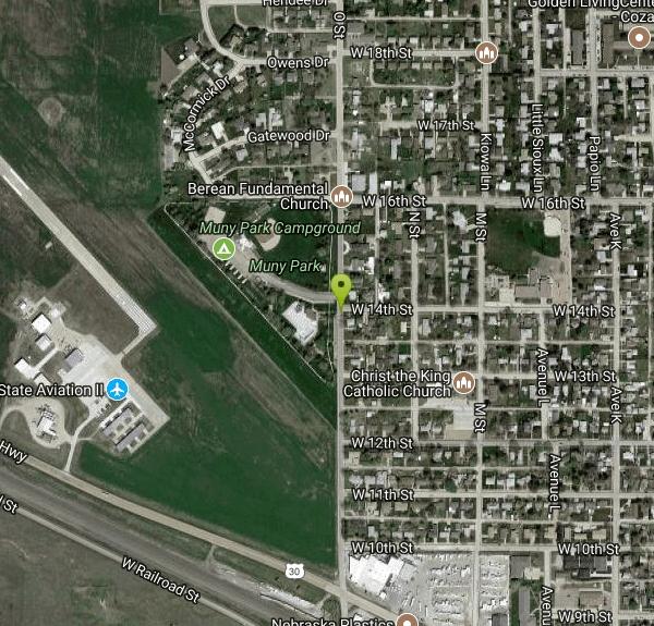West on Hwy. 30 to a right on O St., 3 blocks to Muny Park on the left. 1st tee south of the pool by O St.Courtesy of DiscGolfUnited.com