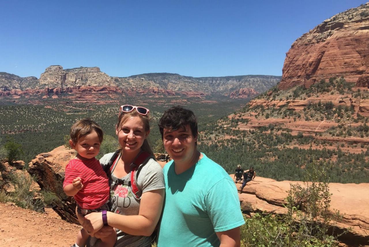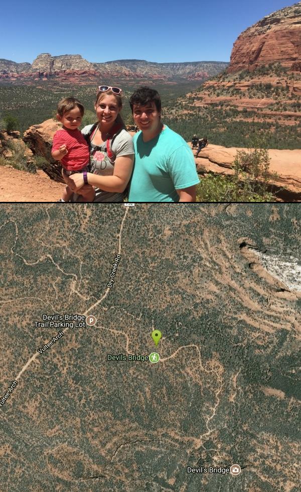 We loved the red rock views on this hike! It's a 3.6 mile round-trip trail, on rocky/sandy ground, and is fairly easy, until the last mile, which is steep. Dozens of jeeps and ATVs passed us - there are plenty of local tourist companies that can take you up there if you don't want to hike the whole way. Lots of dogs on the trail (use a leash). At the end, Devil's Bridge was AMAZING and beautiful! We hiked on Memorial Day weekend, and it was suuuper busy, so people were waiting in line to go out onto the rock bridge and take a selfie. We didn't want to wait forever so we just took a picture from the mountain. :) The weather at the end of May was lovely - not a cloud in the sky, but breezy enough that we didn't get too hot (probably 80 degrees F while we were hiking at 1:00 pm). There were soooo many cars that we had to park on the main road, and that added about a mile to our hike each way. We hiked with our 1 year old toddler, and just ended up taking turns carrying him the whole way since we didn't have a baby backpack. It took us about 2 hours to get up and about 90 minutes to get down.