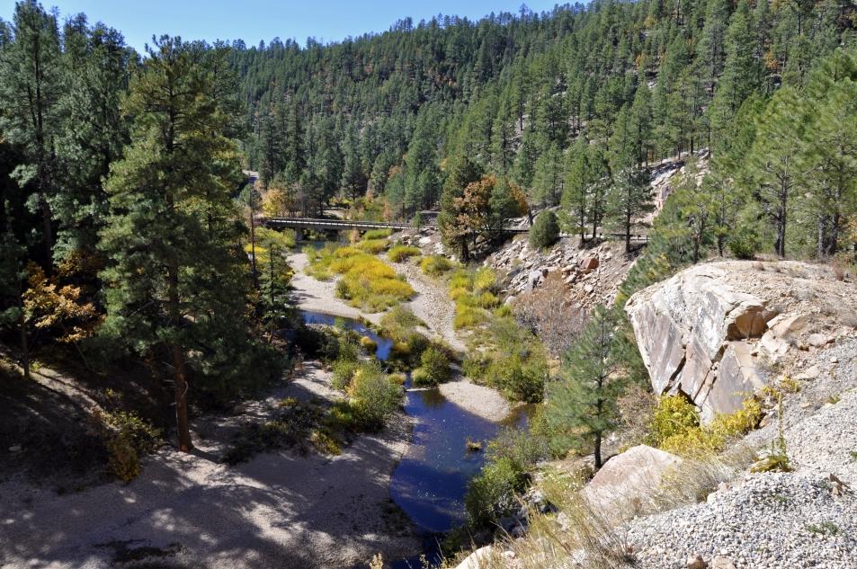 East Clear Creek is a river that stretches through the Mogollon Rim area of Arizona. It provides water to the surrounding desert landscape, fishing opportunities, and various areas to hike, canyoneer, and swim. There are many scenic views along the river, such as the popular view of the surrounding canyon from FR 95. Another noteworthy site is the Kinder Crossing Trail, which takes hikers down to deeper portions of the river suitable for swimming.