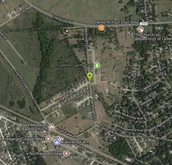 South I-45 from Dallas; Bus. 45 exit to a right at 1st light (Hardy). Go to stop sign, take right on Deaton (becomes Emhouse), 0.75 mile to a left on McKnight (small brown sign on right). Parking lot 1 block down.Courtesy of DiscGolfUnited.com