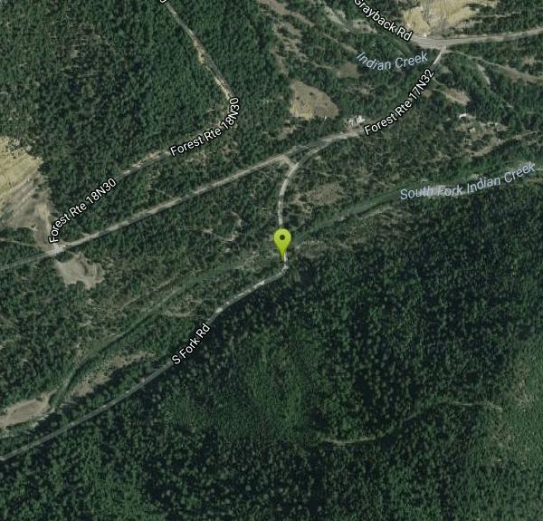 To get here from The Eddy, continue north on Grayback Rd.(may be known also as Indian Creek Rd.) about 5 more miles then turn west (left) on South Fork Rd then keep left at the fork to stay on South Fork Rd. (FR 17N32). You will shortly come to a bridge over the South Fork Indian Creek. The Jacuzzi place is here at this bridge.