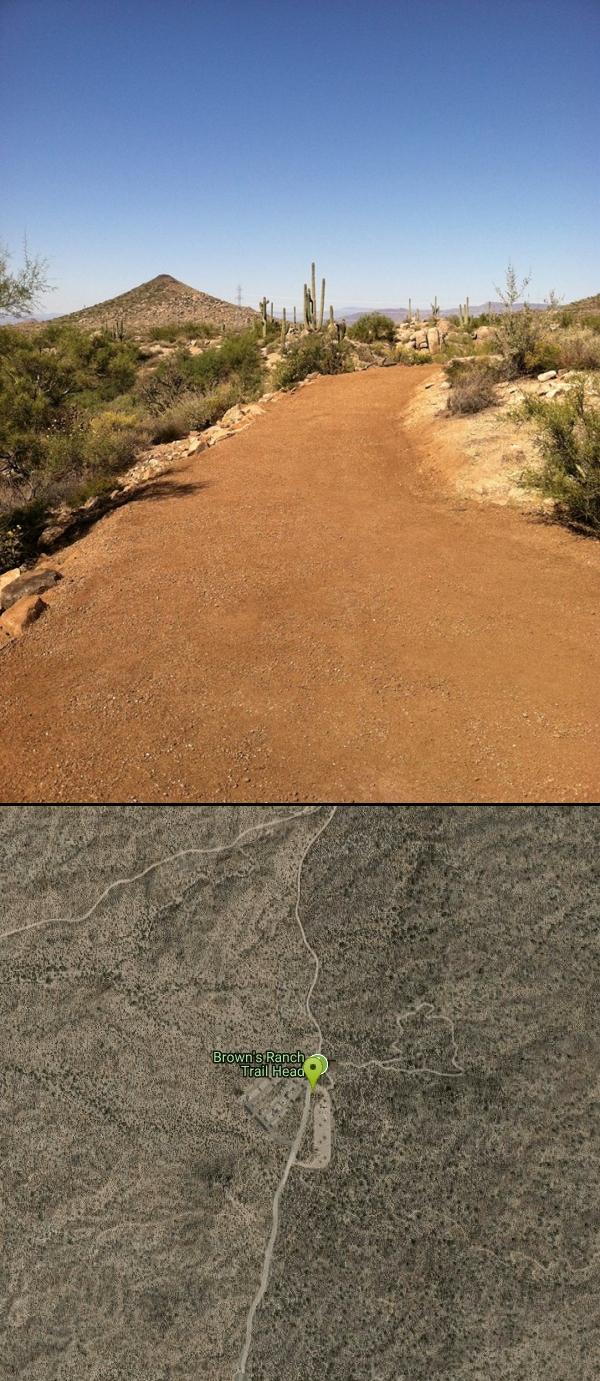 At the beginning of the hike there are bathrooms with water fountains, and a covered picnic area/amphitheater. Along the trail you can see Brown's Mountain, saguaros (some have the inside exposed to see how these cacti function), and Pinnacle Peak.