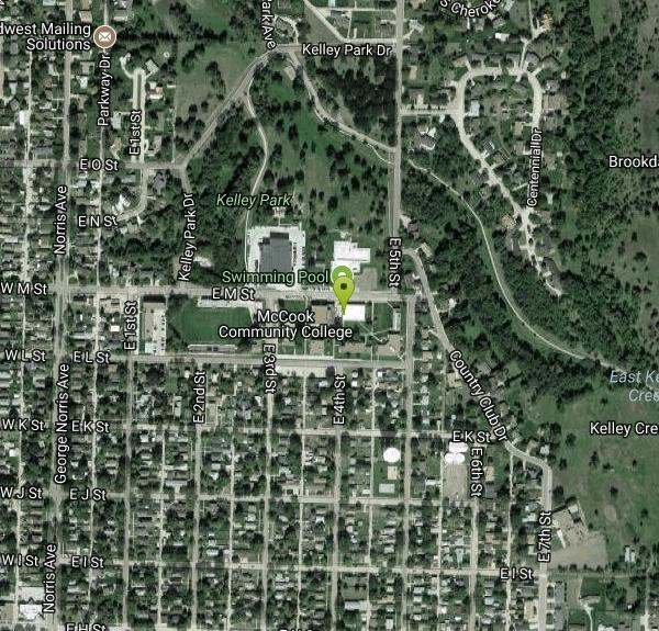 Next to McCook Community College. From Hwy 34; exit on B St, turn north onto E. 1st St, then right on E. M St. 1st tee just east of swimming pool.Courtesy of DiscGolfUnited.com
