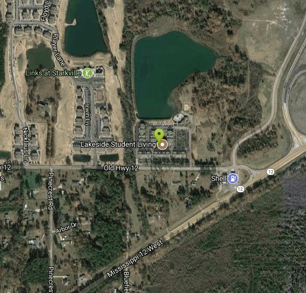 Go west out of Starkville via Highway 12 towards Ackerman. After you cross under Highway 25, take the first right (gas station). Go 0.2 mile to Lakeside Apartments on the right. Park by the office or parking lot across from the office. A small walkway leads to the 1st tee.Courtesy of DiscGolfUnited.com
