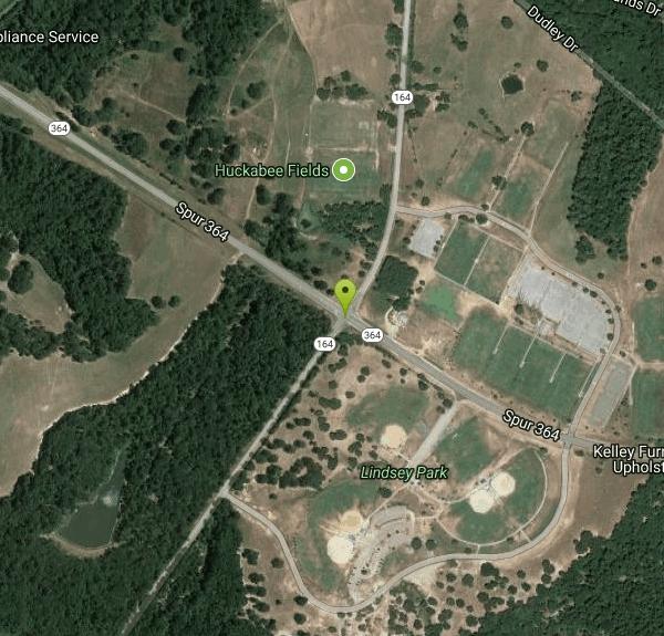 From the intersection of WSW Loop 323 and Spur 364, go west 2 miles to athletic fields and park sign. 1st left into park for Red course (2nd left for Blue). 1st tee is across park road from pavilion.Courtesy of DiscGolfUnited.com