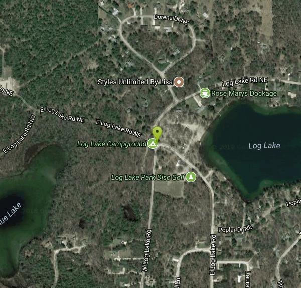 US 131 to the north side of Kalkaska, turn east on County Road 612, 1.5 miles to a left on Log Lake Rd., 1st tee behind baseball diamond.Courtesy of DiscGolfUnited.com