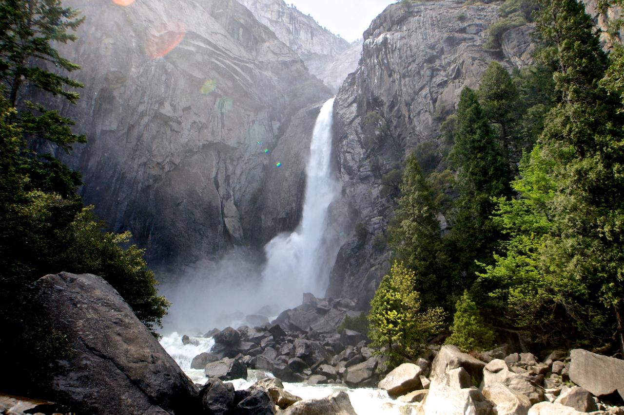 Once you've admired the waterfall, taken tons of photos and gotten completely soaked, you can cross a bridge over Yosemite Creek to loop back to the shuttle stop or make your way east, past Yosemite Village toward Mirror Lake, a popular pool a couple miles away.