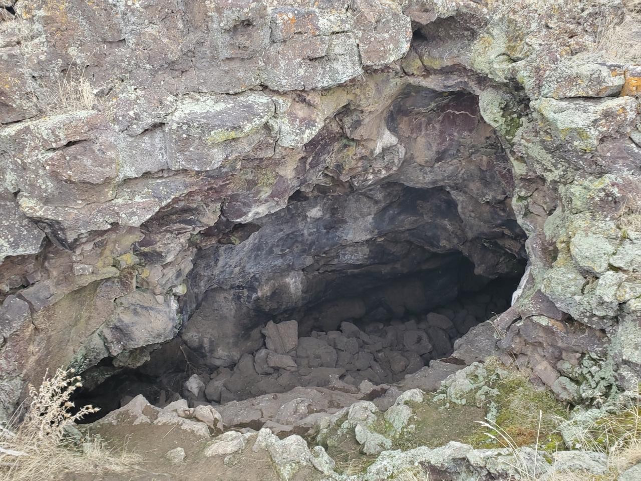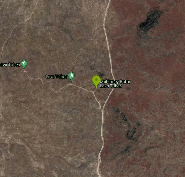 Also known to the locals as the Spider Caves, the McKinney Butte Lava Tubes is a tunnel formed by lava flows from long ago. Similar to many lava tubes with an entrance broken from the side of the tube, the Spider Caves fork immediately after entering. There is a gate blocking the tunnel to the right which requires permit from the Shoshone BLM Field Office to go beyond the gate.