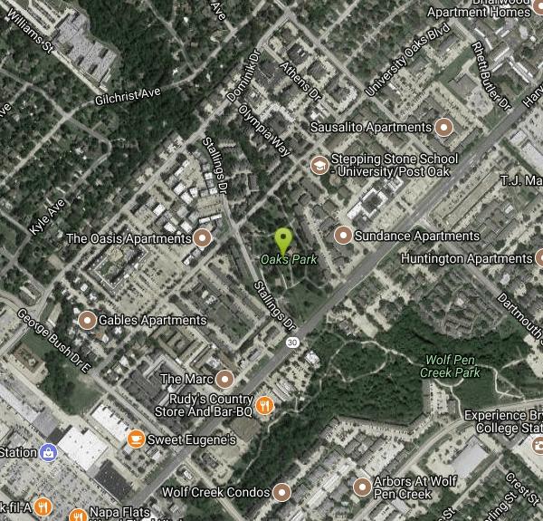 Small course nestled between two apartment complexes. Lots of shade. Bushes to navigate. Creek runs through middle of park. Public (No Fee)Courtesy of DiscGolfUnited.com