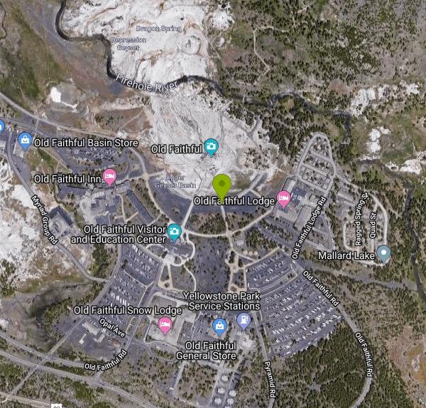 - Continue straight onto Old Faithful Lodge Rd (161 ft)