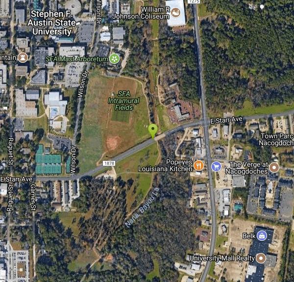 E. Starr Ave. between Wilson Dr. and Cardinal St. Across from Stephen F. Austin State University playing fields.Courtesy of DiscGolfUnited.com
