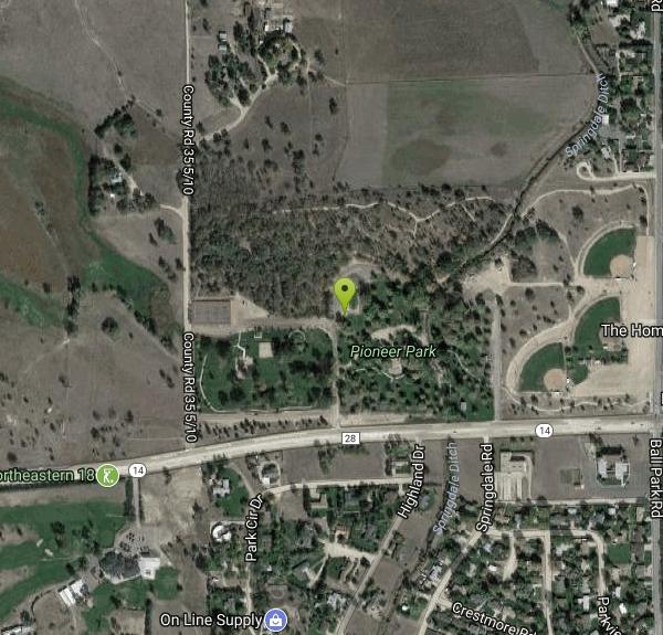 2 miles west of downtown on W. Main/ CO Hwy 14. Next to ball fields.Courtesy of DiscGolfUnited.com