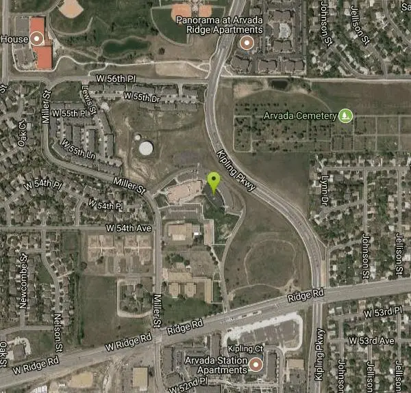 I-70; exit at Kipling. Go north to 1st left (49th), then right on Miller. Cross RR tracks to a right on Ridge. Turn left into RRCC, take left fork to unused parking area next to vacant bldg. Walk uphill towards 1st tee at south end of new building.Courtesy of DiscGolfUnited.com