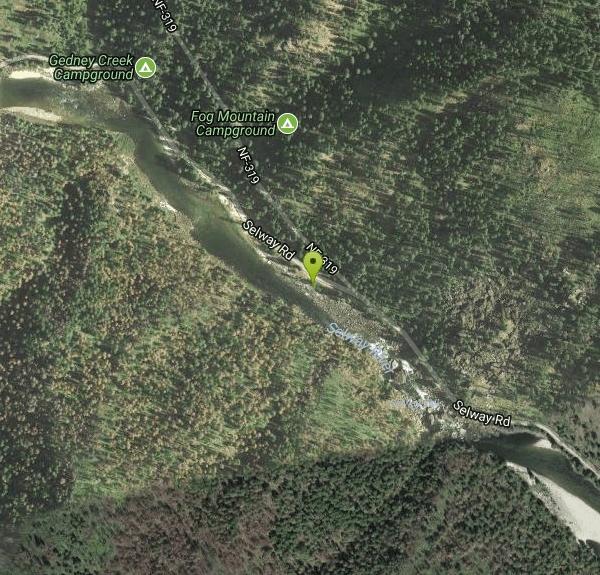 The main fork of the Selway is about 100 miles in length, from the headwaters in the Bitterroot Range of the Rocky Mountains to the confluence with the Lochsa River near Lowell, Idaho.