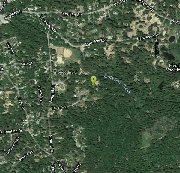 Hwy 49N; exit at Broad St. in Nevada City. Turn right onto Boulder St. Turn right on Park Ave. Turn right on Max Solaro Dr. Park toward the back of the parking lot. Walk behind the parking lot and across the bridge to the gated property. The entrance is directly across the creek from the BBQ Area.Courtesy of DiscGolfUnited.com