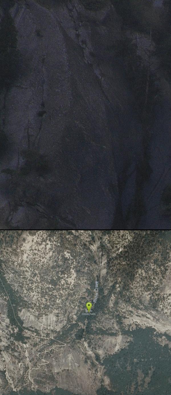 Snow Creek Falls is 2,140 feet of cascades enveloped in Tenaya Canyon. The entire fall is made up of seven separate drops, the longest being 500 ft. Because of the deep recesses of the rocks it flows over, it is almost tucked away inside the canyon. But if you know where to look, you can find it.