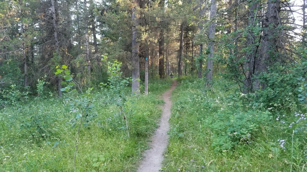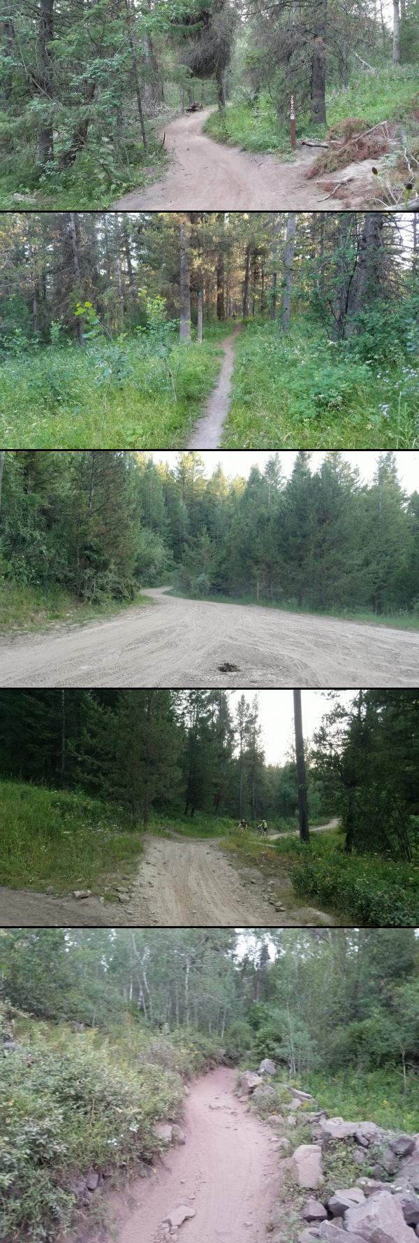 The trail starts out with a really flowy singletrack then connects up to some ATV trails. On the single track, just stay on the main trail. There are several little splits several you can take that all come back together. If it splits off hard, stay on the main trail. These other routes aren't really optional challenges, just different routes. At the end of the singletrack section, there'll be a cattle guard and you'll come to a 'T'. Go left, then immesiately right. The trail is mostly downhill but there are a couple of pretty good climbs at this point. There are a lot of junctions but if you keep right at all of them from here, you'll make it out just fine. There are several small jumps on the trail. All in all, it's a pretty flowy track with some great berms. Don't run into any cows and go fast through the thistle patch near the top (it'll hurt less that way).