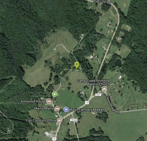 On the grounds of Mavis Manor (a B&B Retreat/Farm) on Flat Top Mtn. A backwoods course with field and forest. You will be walking in the woods, on a grass mountain side, and in open fields - and may even see some cows with calves. A 'backyard hobby' course, it's always improving. $1 donation encouraged. Seasonal. Private (No Fee)Courtesy of DiscGolfUnited.com