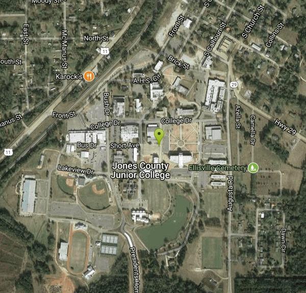 On the Jones County Junior College Campus. A good mixture of woods, sparse trees, open fields and water. Public (No Fee)Courtesy of DiscGolfUnited.com