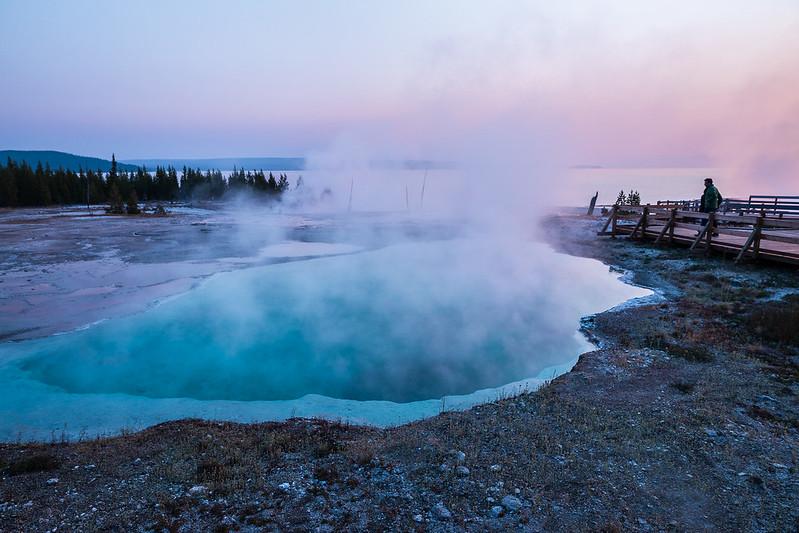 This area features many other springs in the area. As surprising as it is, this area is also one of the least visited areas within Yellowstone. There are boardwalks all along the basin, making it an easy walk to see the beautiful hydrothermal springs in the area. West Thumb's name is derived from the thumb-like projection of Yellowstone Lake and the name was given by the 1870 Washburn Expedition. It was also known as Hot Spring Camp. West Thumb has less geyser activity than other basins. However, amazingly for its size it has all — hot springs, pools, mud pots, fumaroles and lake shore geysers.