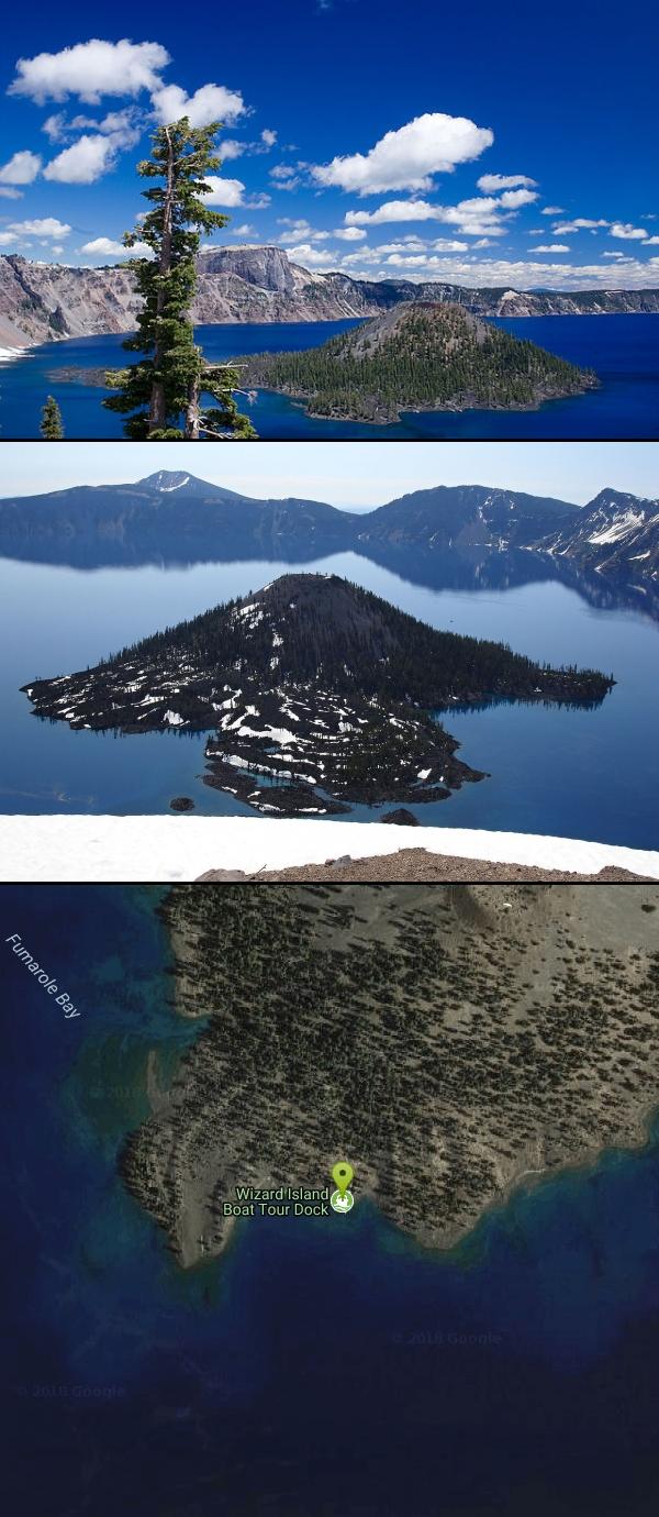 Created by a violent eruption of Mount Mazama about 7,700 years ago, Wizard Island is located at the west end of Crater Lake. Although there are other cinder cones in the lake, Wizard Island is the only one to reach above the surface. The island rises about 755-feet above the lake.